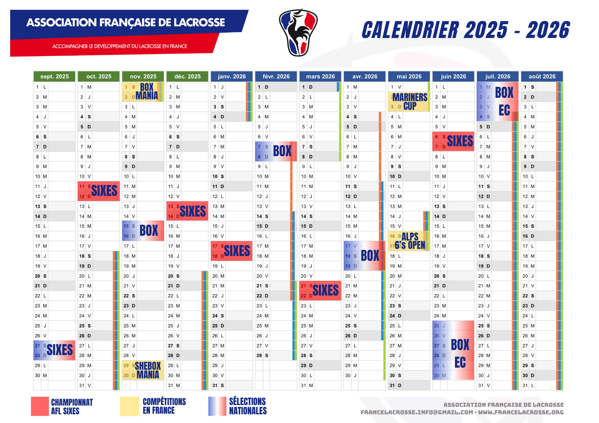 Toutes les infos sur les clubs, équipes nationales, compétitions et lacrosse en général peuvent être trouvées ici.